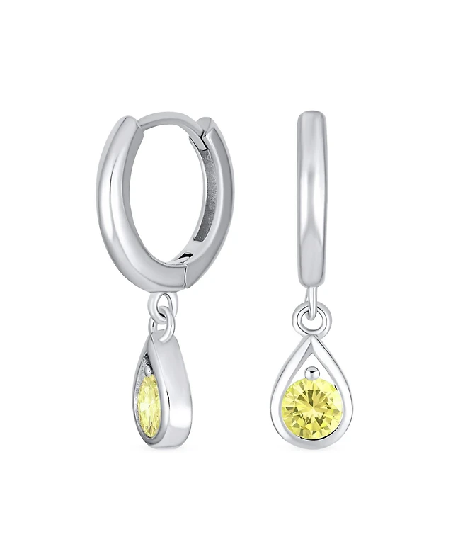 Bling Jewelry Classic Small Cz Cubic Zirconia Pear Shaped Dangling Teardrop Huggie Earrings .925 Sterling Silver