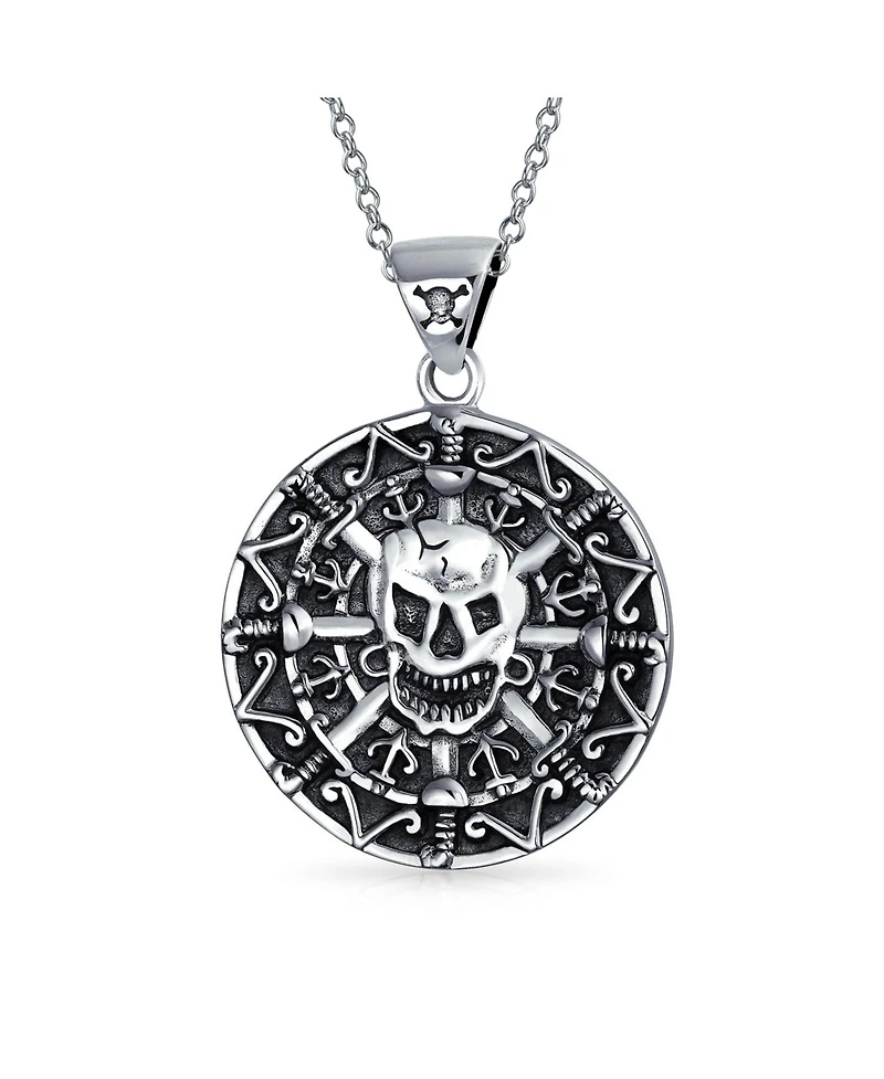 Bling Jewelry Coin Medallion Pirates Skull Pendant Necklace Oxidized Sterling Silver