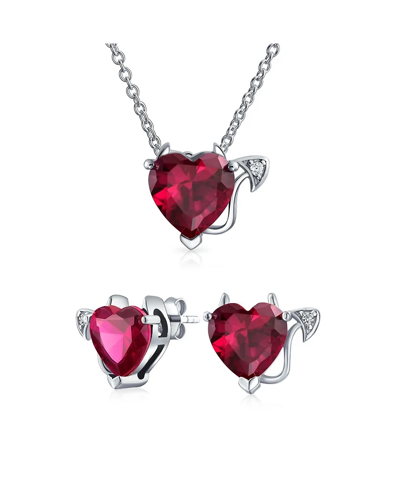 Bling Jewelry Cubic Zirconia Ruby Red Cz Devil Heart Stud Earring Pendant Set Sterling Silver