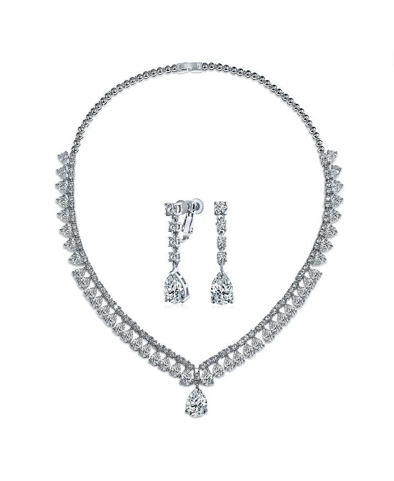 Bling Jewelry Cz Cubic Zirconia Solitaire Teardrop Statement Collar Statement Necklace & Clip-On Earrings Jewelry Set