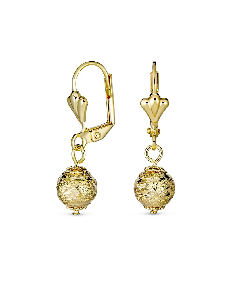 Bling Jewelry Elegant Stunning Spheres Light Weight Dangle Lever back Round 6MM Ball Drop Earrings Yellow 18K Gold Plated Brass