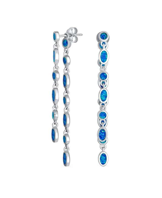 Bling Jewelry Geometric Mod Multi Alternating Bezel Oval & Round Circles 2 Strand Long Waterfall Synthetic Opal Dangle Earrings Sterling Silver 2 inch