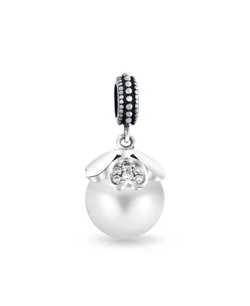 Bling Jewelry Heart Cap Pearl Dangle Charm Bead Sterling Silver European Bracelet