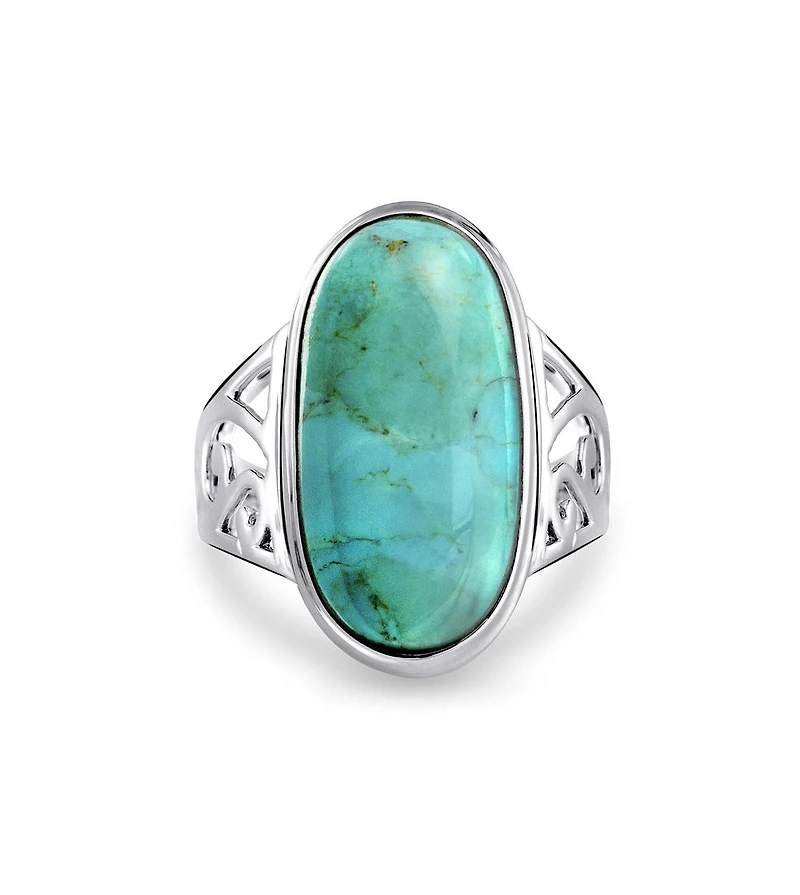 Bling Jewelry Large Oval Cabochon Western Natural Turquoise Statement Ring Filigree Scroll Band .925 Sterling Silver in Franklin, TN