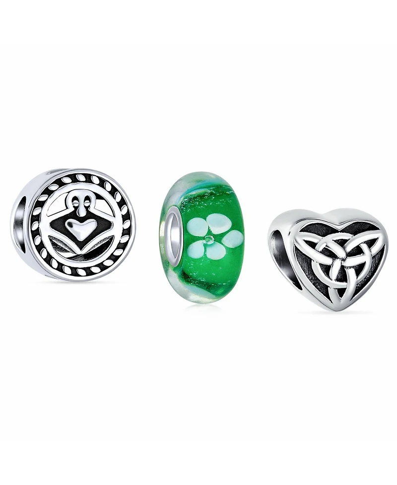 Bling Jewelry Lucky Green Clover & Knot Claddagh Charm Bead Set Sterling Silver for Bracelet