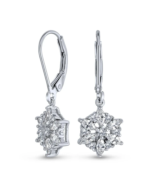 Bling Jewelry Marquise Cubic Zirconia Frozen Winter Holiday Party Cz Snowflake Lever back Dangle Drop Earrings Sterling Silver