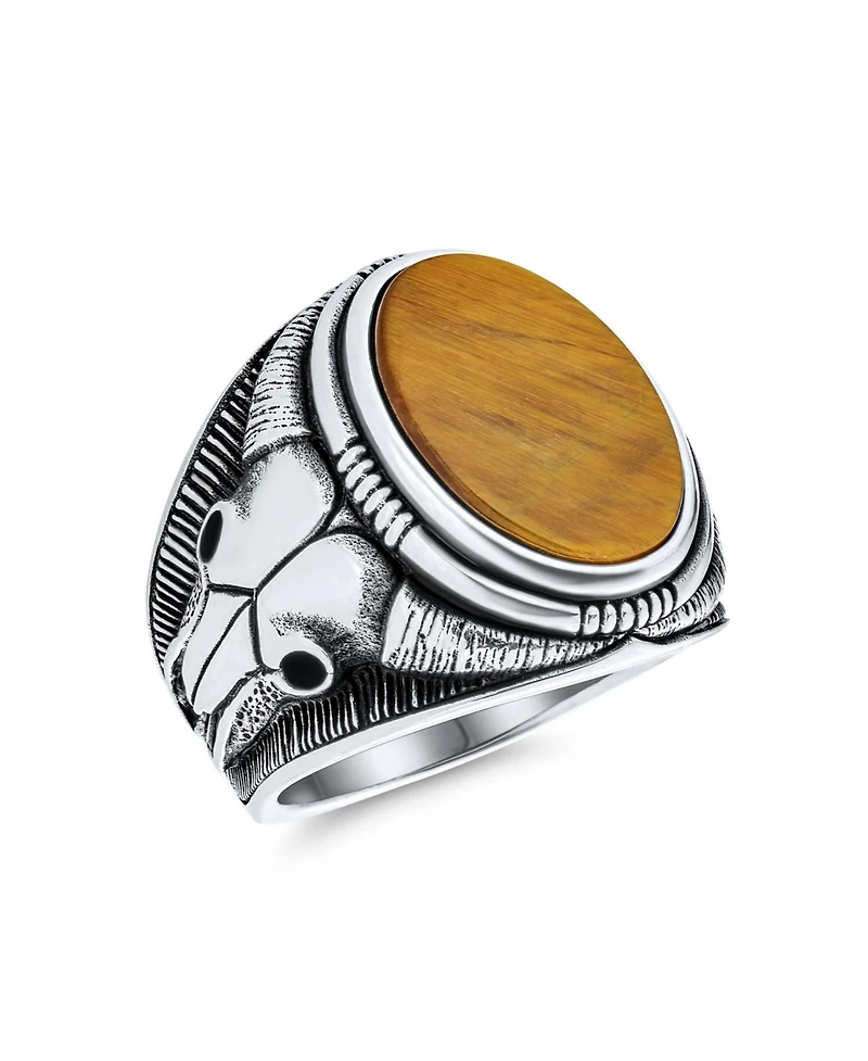 Bling Jewelry Men's Signet Western Texas Longhorn Skull Ring Sterling Silver