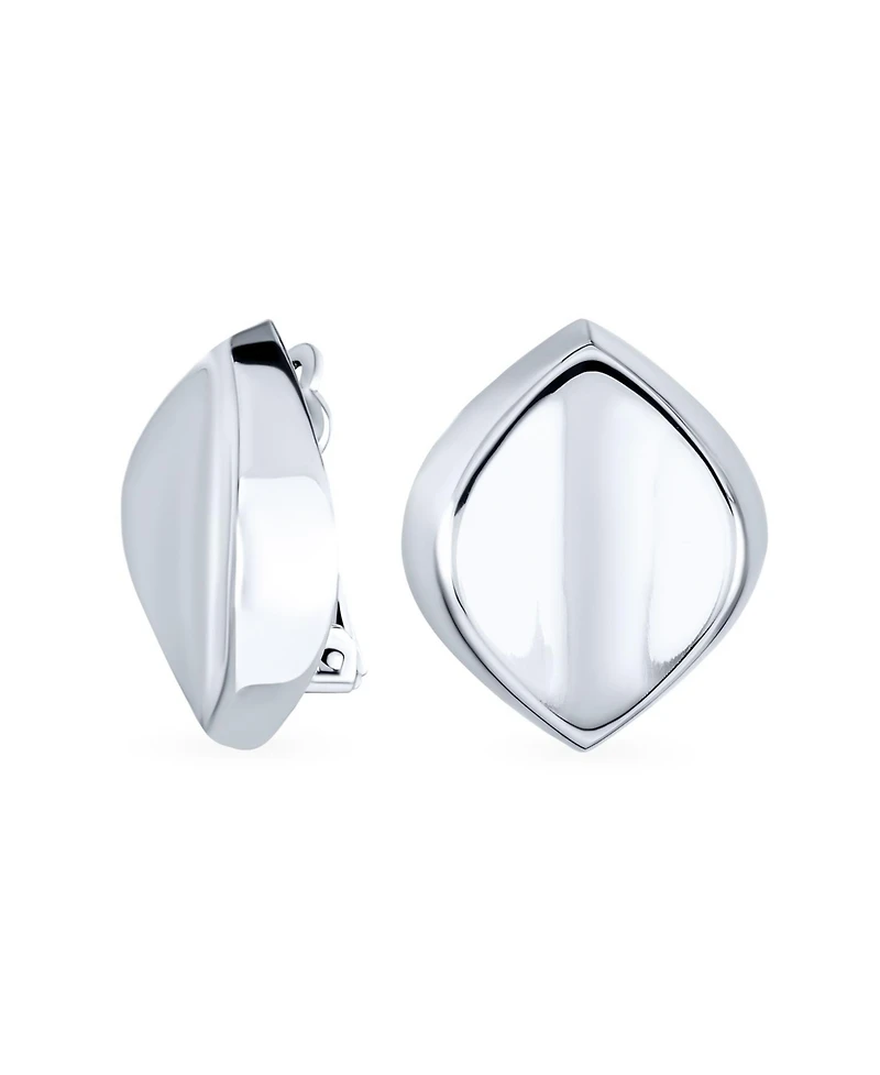 Bling Jewelry Modern Oval Concave Clip On Earrings .925 Sterling Silver Non Pierced Ears