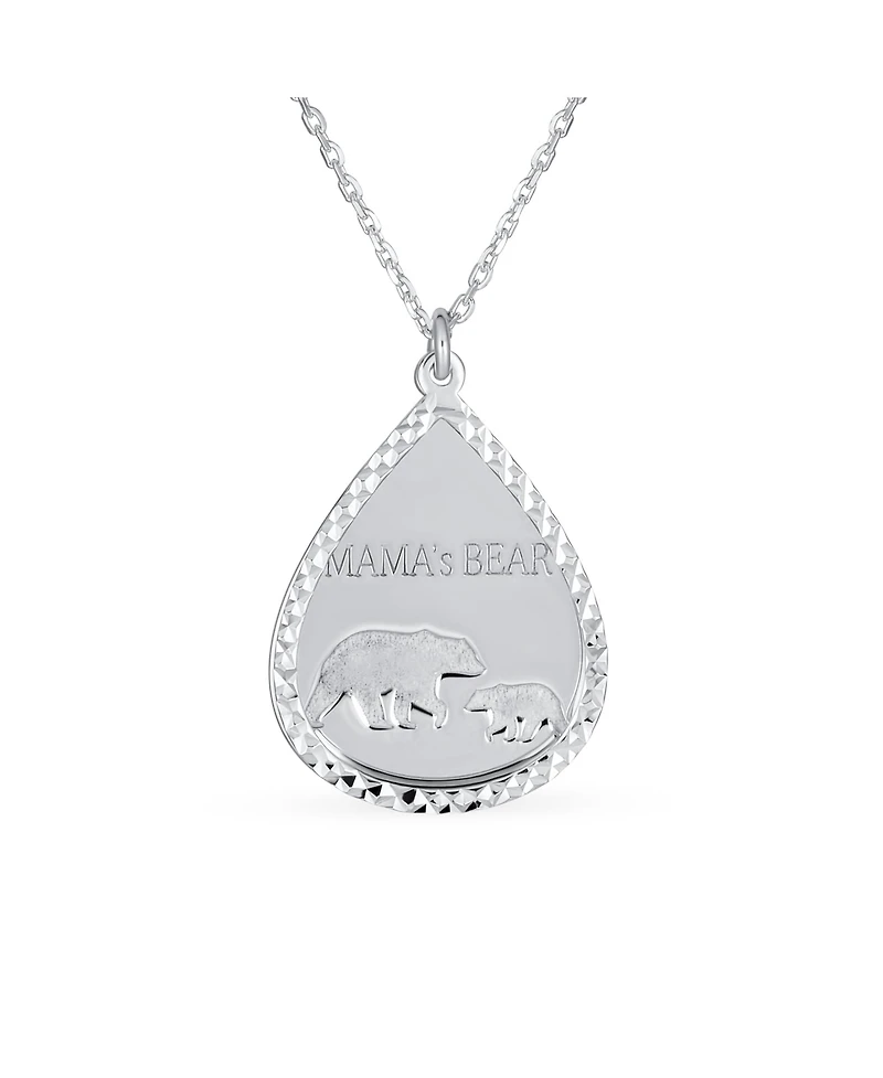 Bling Jewelry Mother-Bear Bezel Teardrop Word Mama Bear Necklace Sterling Silver