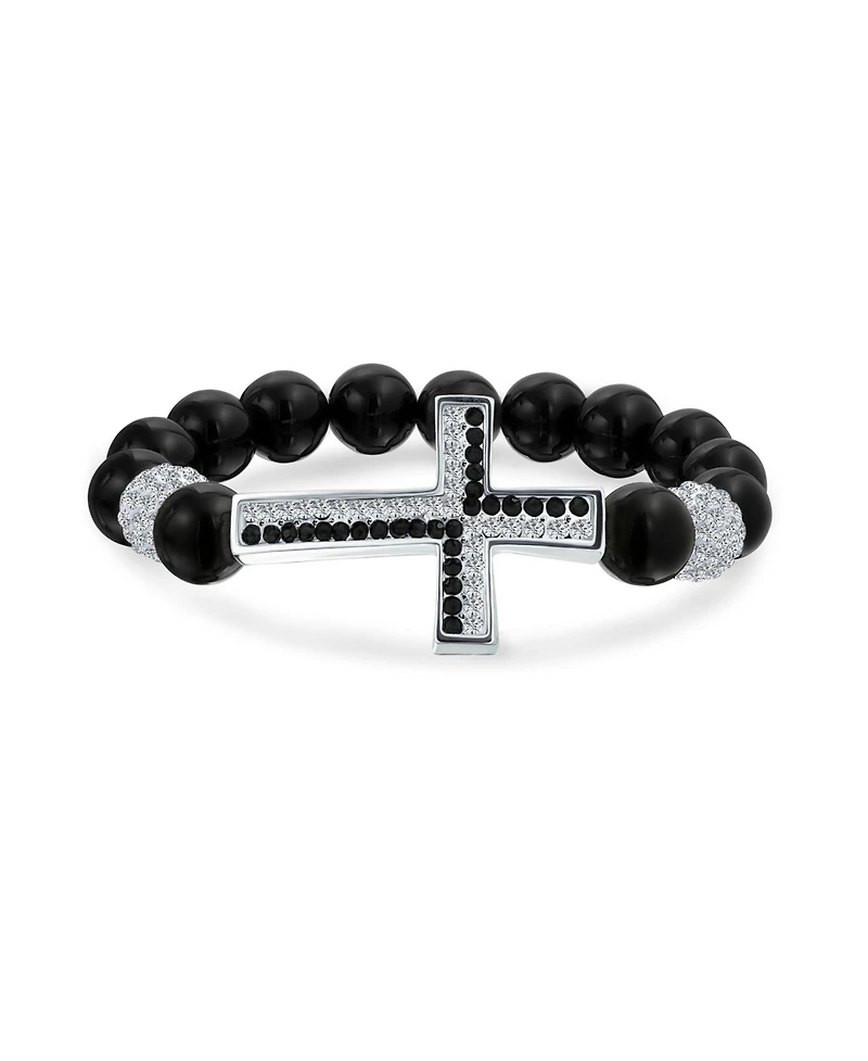 Bling Jewelry Religious Sideways Cross Black Onyx Compressed Turquoise White Pave Crystal Stretch Bracelet Silver Plated