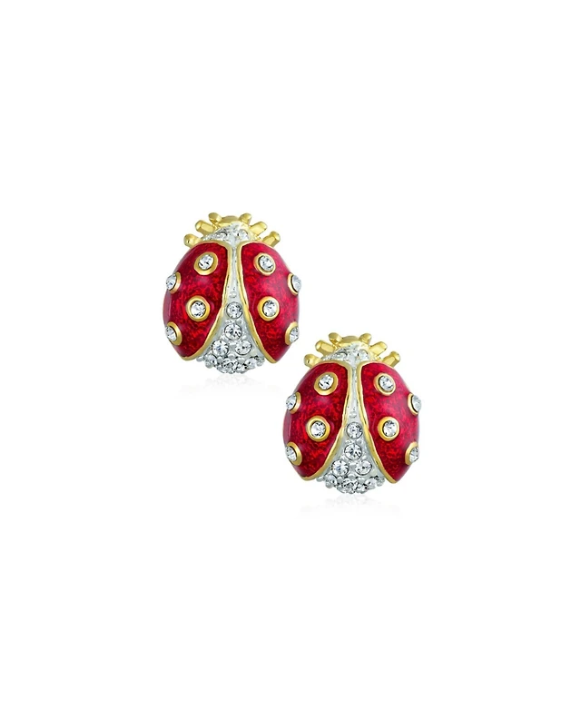 Bling Jewelry Set of 2 Red Ladybug Crystal Brooch Pins in Gold Plated Enamel