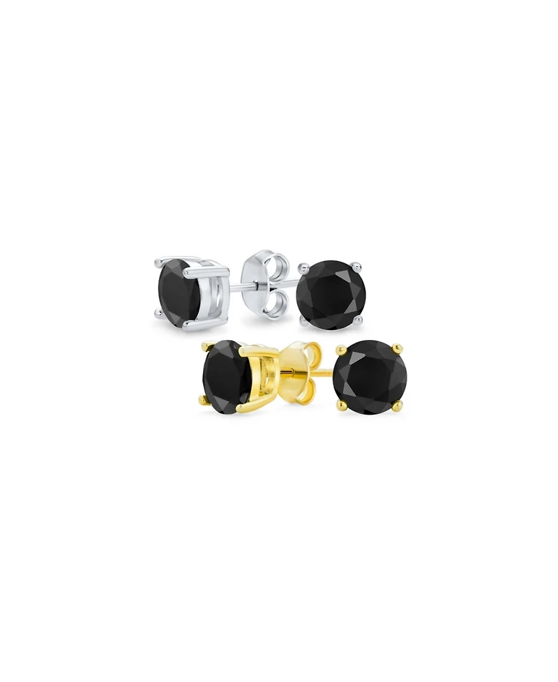 Bling Jewelry Set of 2 Round Solitaire Cz Cubic Zirconia Stud Earrings Gold Plated .925 Sterling Silver 5-10MM