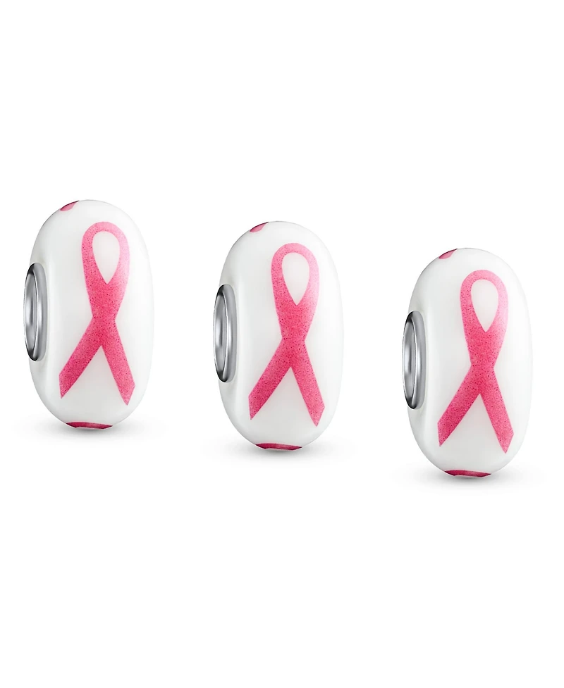 Set Of 3 -Opaque Glass -Commemorate a cause thats close to you with this beautifully crafted charm. Raising breast cancer awareness this unthreaded charm bead gets people to think pink. Tell your story on your charm jewelry bracelet.
