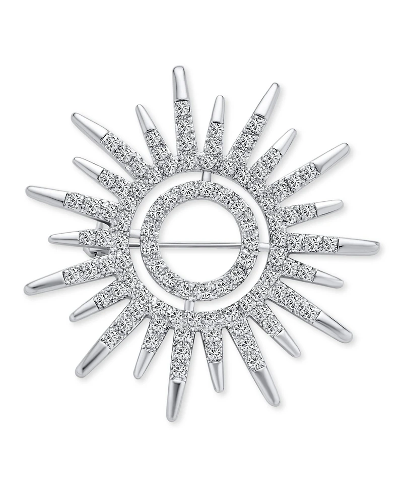 Striking Style To Brighten Your Day - When skies are gray, keep a little sunshine with you with this shimmering, sun motif pin that radiates sparkle with cz embellishment. Perfect for lapel, jacket hijab, scarves, skirt, sweater, kilt, purse and more. Thread scarf ribbon through this open round pin and tie to favor bags.