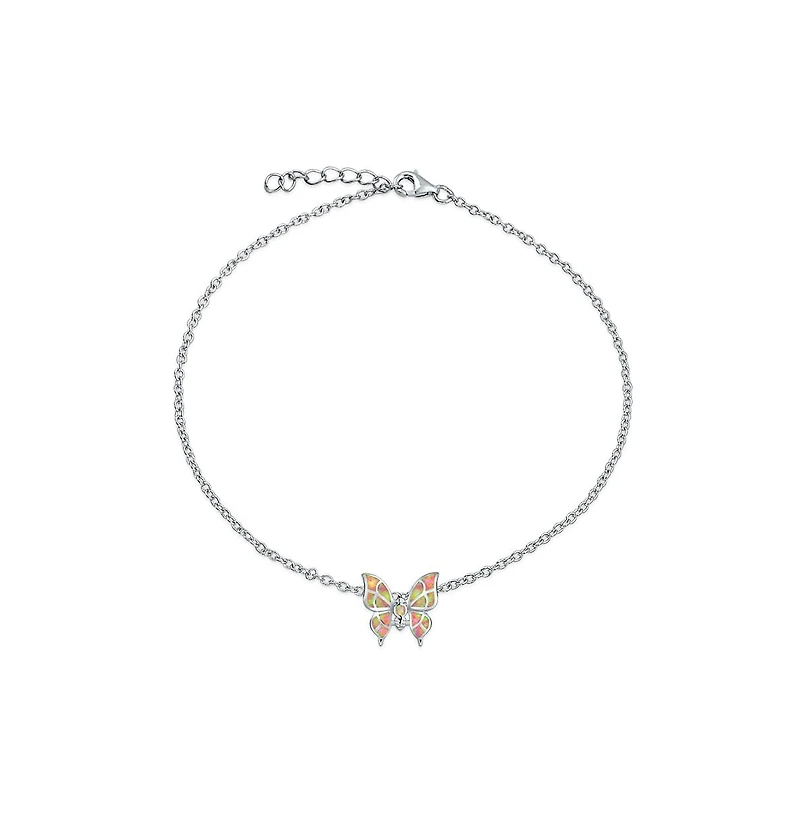 Bling Jewelry Summer Garden Opalescent Butterfly Pink Opal Anklet Ankle Bracelet Sterling Silver