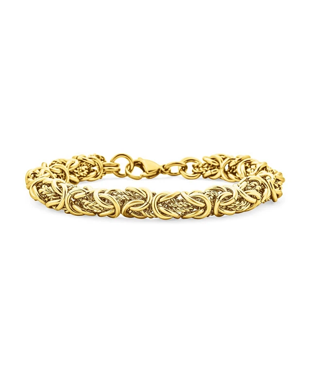Bling Jewelry Thick Mens Strong Biker Jewelry Hip Hop Gangster Heavy Mechanic Link Byzantine Chain Bracelet For Men Yellow Gold Plated Stainless Steel