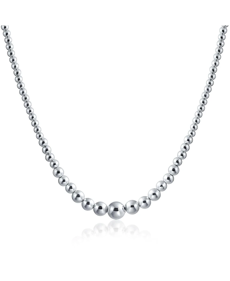 If you love the classic, timeless look of pearls and modern trends then get the best of both worlds. A strand of graduated sterling silver hollow balls for light weight comfort wear, but still have a substantial statement look. This a great staple must have accessory.