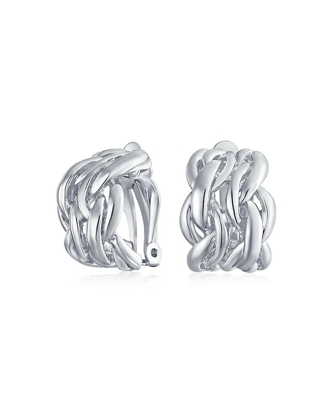 Bling Jewelry Twisted Cable Chain Weave Wide Half Hoop Clip On Earrings Non Pierced Ears