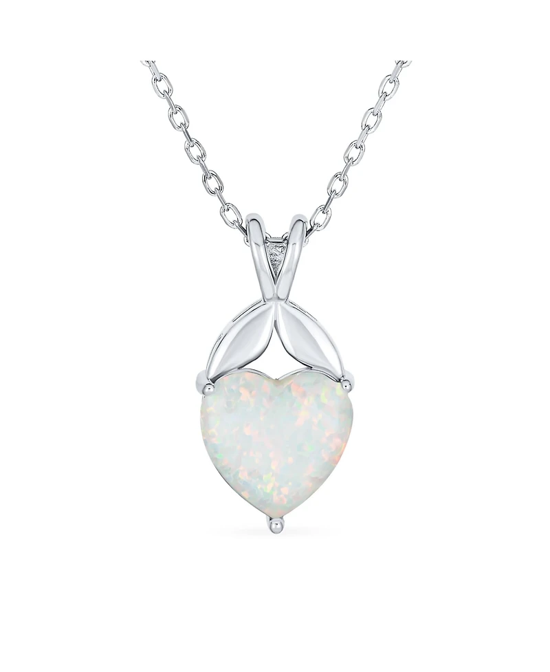 Bling Jewelry White Created Opal Heart Pendant Necklace in .925 Sterling Silver