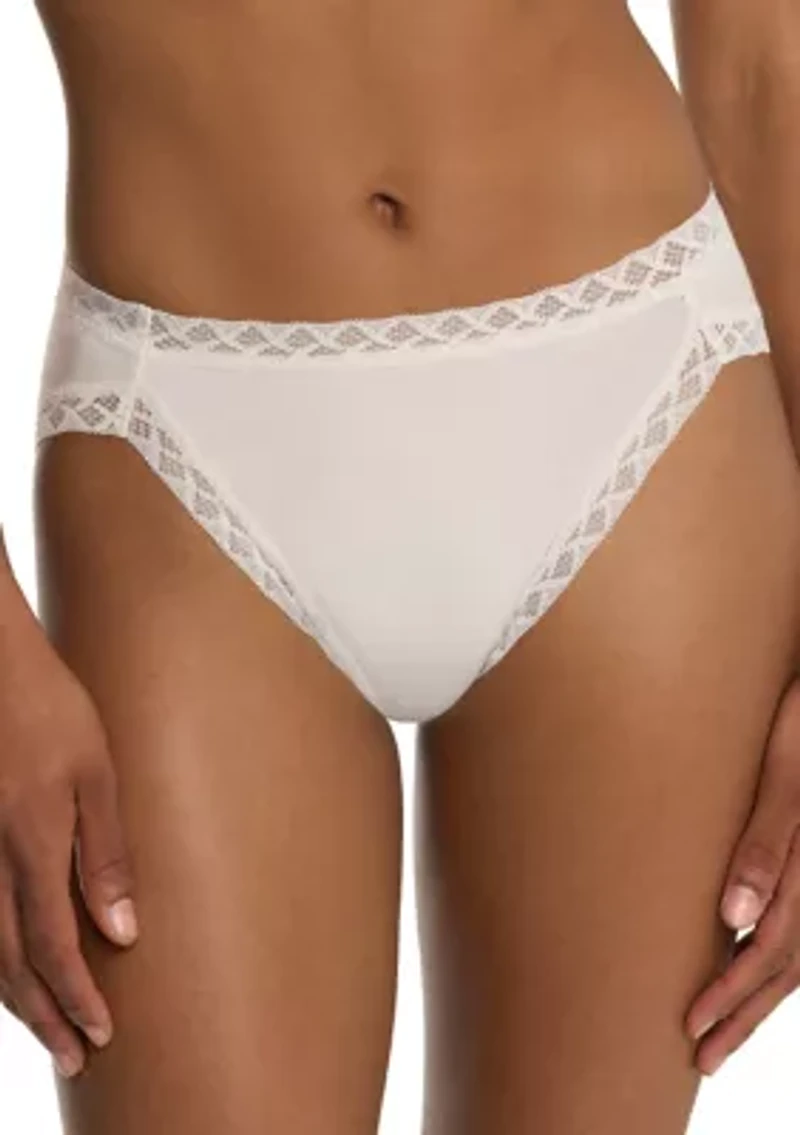 A true everyday basic, these super soft, comfortable, and flattering Natori underwear offer a variety of unbeatable features. Including a flattering French cut shape with a high-cut front leg, these underwear are made with one of the highest quality cotton available, Pima Cotton, which makes this one of the most comfortable pairs you will wear. Designed with softer, stronger, and breathable high-recovery lace at the waist and leg opening and side seams wrapping to the front to anchor, the elastic waistband helps eliminate the visible underwear look. Elastic waistband 4-way stretch, super soft Pima cotton and soft lace Waist and leg openings are outlined with soft lace High-cut, French cut silhouette for a long leg look Tag-free Imported Material & Care Nylon, elastane, cotton, lycra® Hand wash
