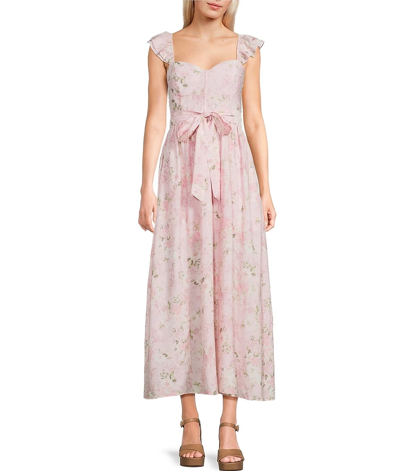 Blu Pepper Floral Printed Ruffle Sleeve Sweetheart Neck Tie Front Midi Dress in Franklin, TN