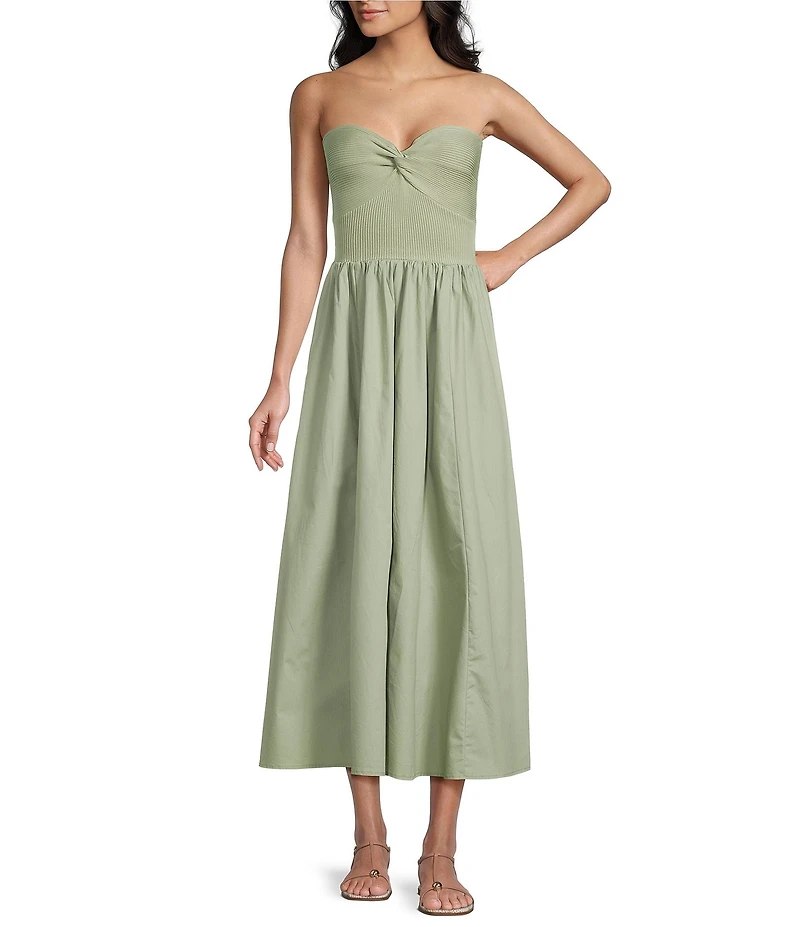 Blu Pepper Knit to Woven Strapless Twist Front Midi DressBlu Pepper Knit to Woven Strapless Twist Front Midi DressBlu Pepper Knit to Woven Strapless Twist Front Midi Dress