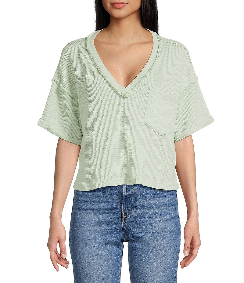 Blu Pepper Knit V-Neck Pocket Short Sleeve T-Shirt in Franklin, TN