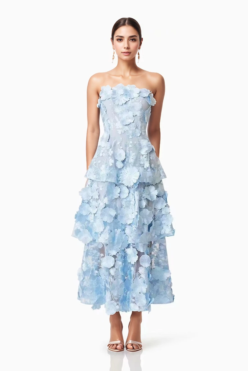 Blue 3D Flower Strapless Dress in Franklin, TN