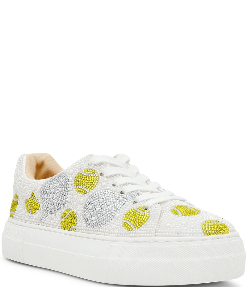 Blue by Betsey Johnson Sidny Tennis Print Rhinestone Platform Sneakers