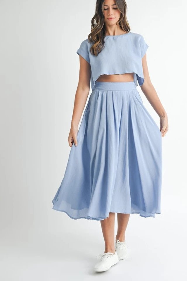 Blue Crop Top & Midi Skirt Set