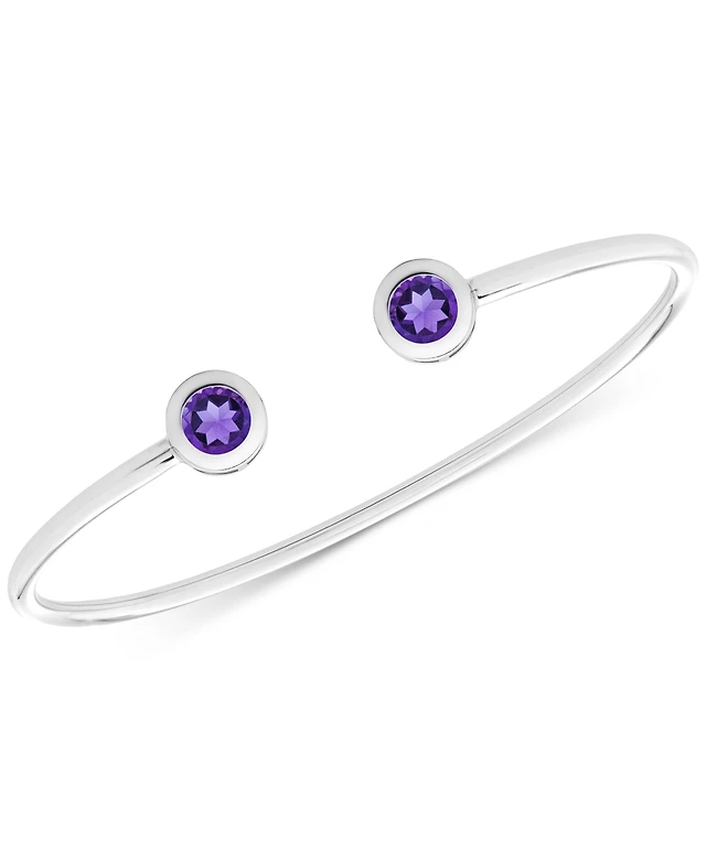 Lab Grown Amethyst & Diamond Accent Flex Bracelet Sterling Silver (Also available Blue Topaz Garnet)