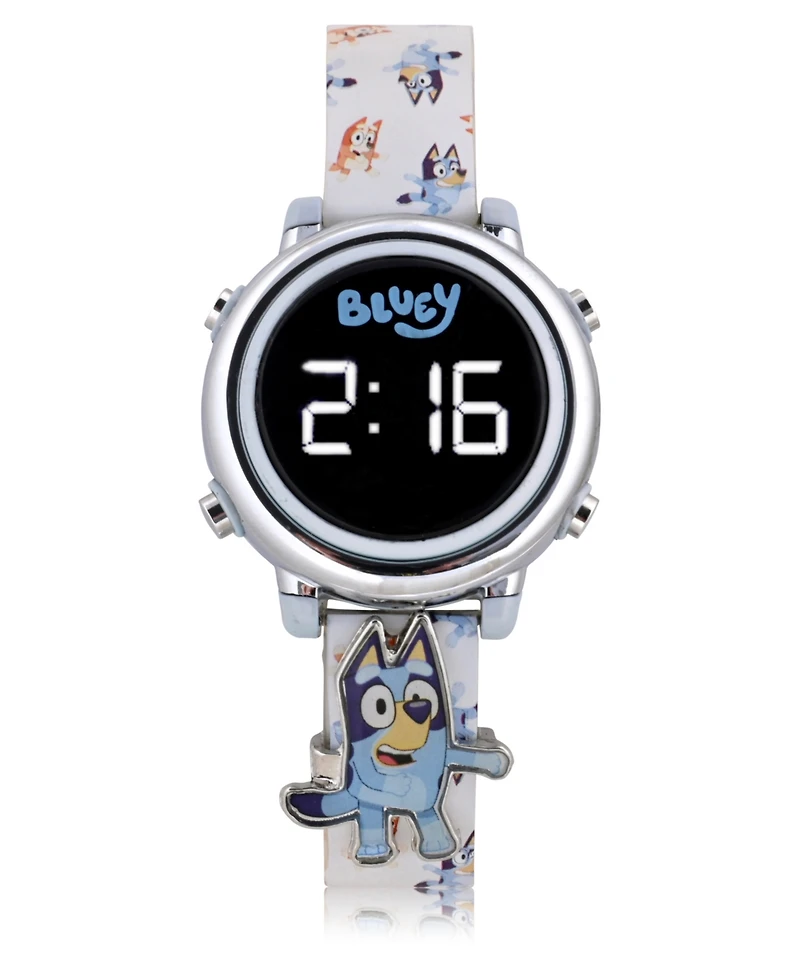 Home and garden Bluey unisex children's Led watch with bluey on strap. Clear Led display and a secure and adjustable buckle strap, makes this the perfect gift for any bluey fan. Style #BLY44003MC.