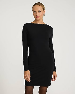 Boat Neck Long Sleeve Open Back Mini Sheath Dress