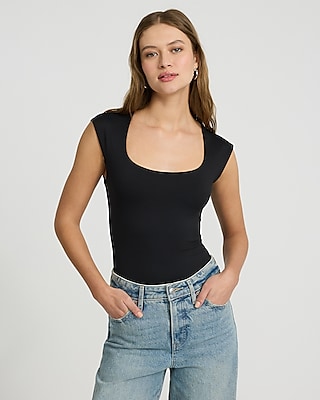 Smooth, sculpt and define your silhouette. The scoop neck and cap sleeves on this soft matte bodysuit complete any look this season. Easy to style solo and easy to layer up.