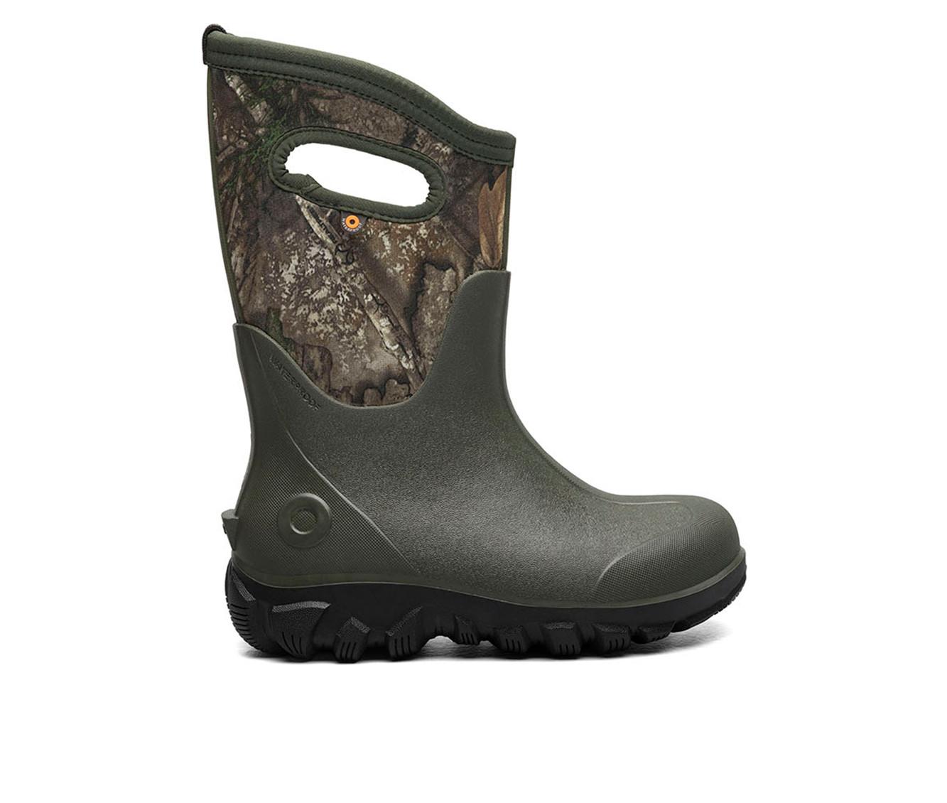 Bogs Footwear Little Kid & Big Kid Seamless Realtree Rain Boots Built to handle the elements, these waterproof boots keep feet dry, warm, and comfortable through wet or snowy conditions. Crafted with a seamless construction for lasting durability, they feature pull handles for easy on and off. The insulated interior provides reliable warmth, while the slip-resistant outsole ensures steady traction on slick surfaces, perfect for outdoor play, chores, or all-weather adventures.
