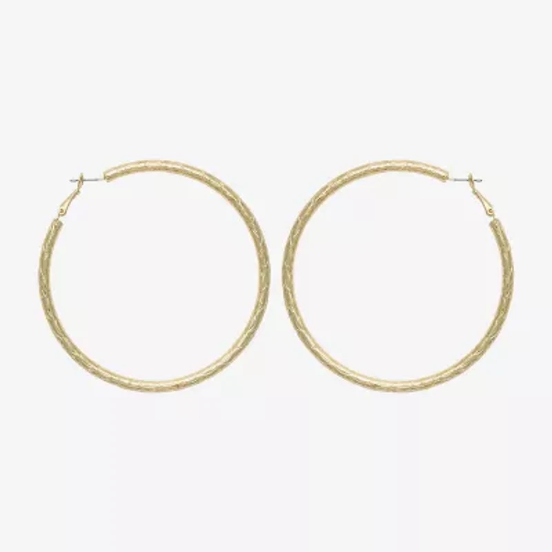 Bold Elements Diamond-Cut 79.1mm Womens 79.1mm Hoop Earrings