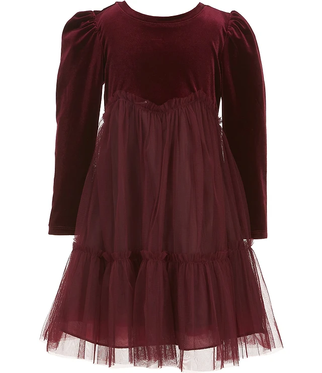 Bonnie Jean Little Girls Long-Sleeve Stretch Velvet/Tiered Mesh Skirted Float Dress