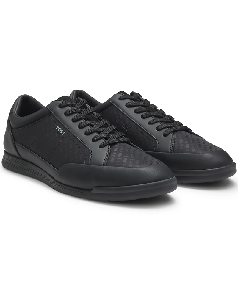 Boss by Hugo Men's Monogram-Jacquard Leather Trim Trainers Shoe