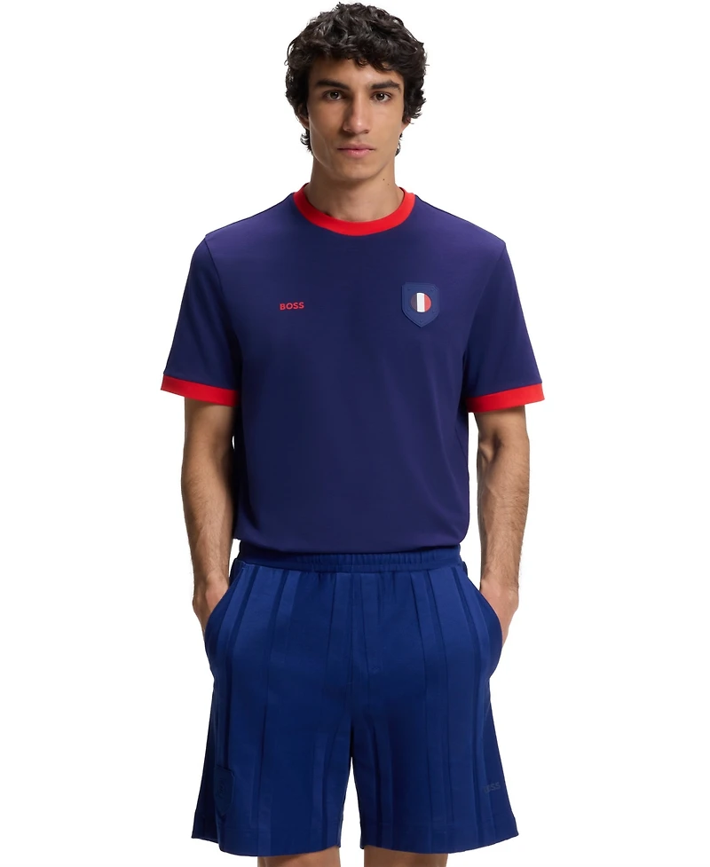 Boss by Hugo Men's Stretch-Cotton France Country Flag Logo T-Shirt