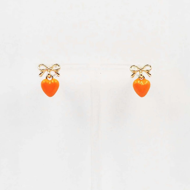Bow and Heart Drop Earrings in Orange