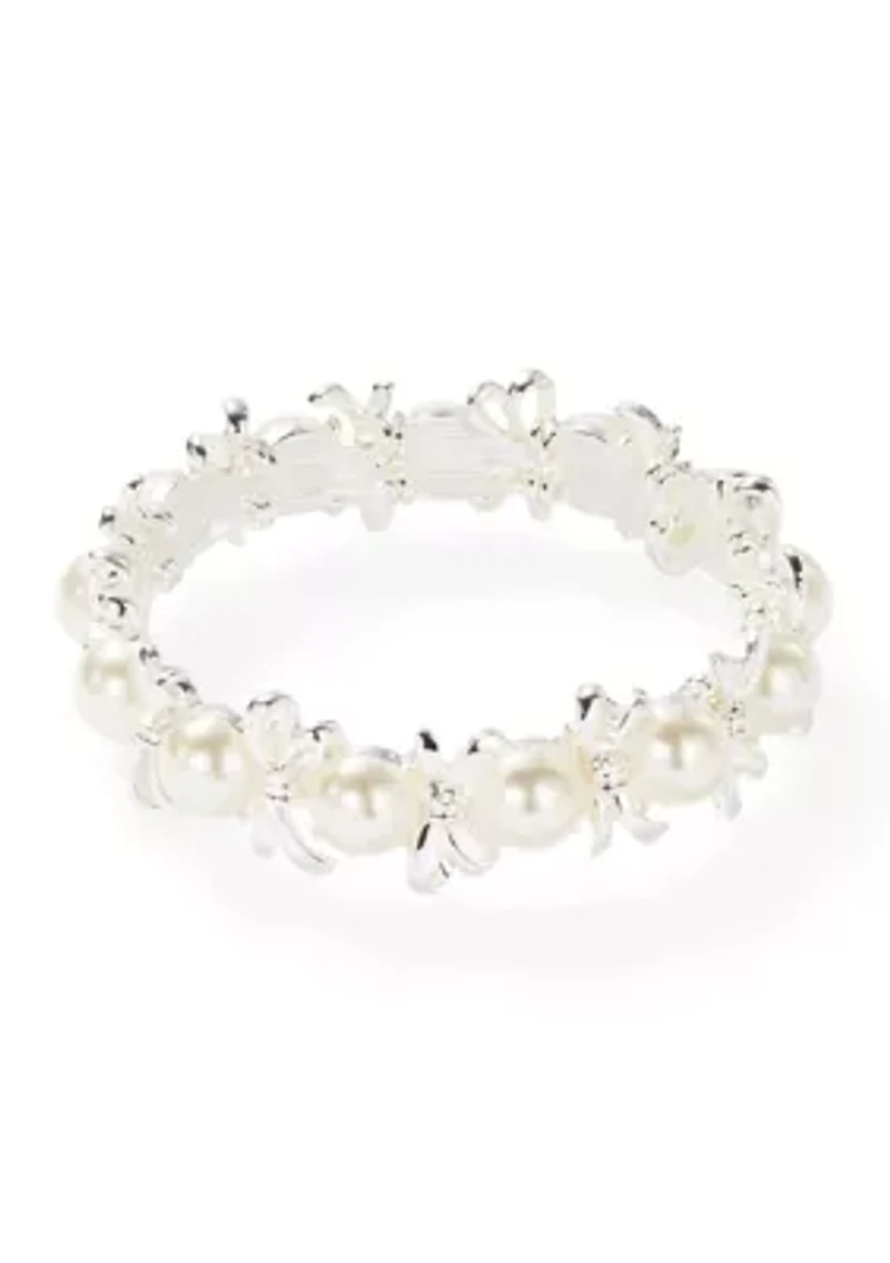 Bow and Pearl Silver Tone Stretch Bracelet in Franklin, TN