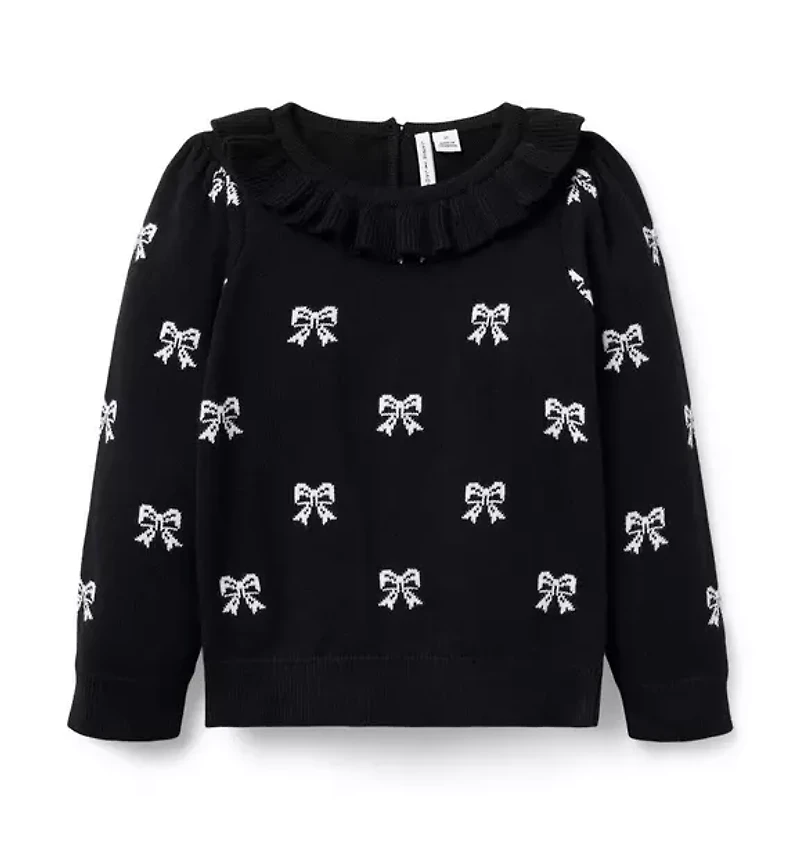 Bows upon bows for our soft sweater. A ruffle collar adds the perfect finishing touch. 54% Combed Cotton/24% Viscose/22% Nylon Long Sleeve Keyhole Button Back Machine Wash, Gentle Cycle; Imported