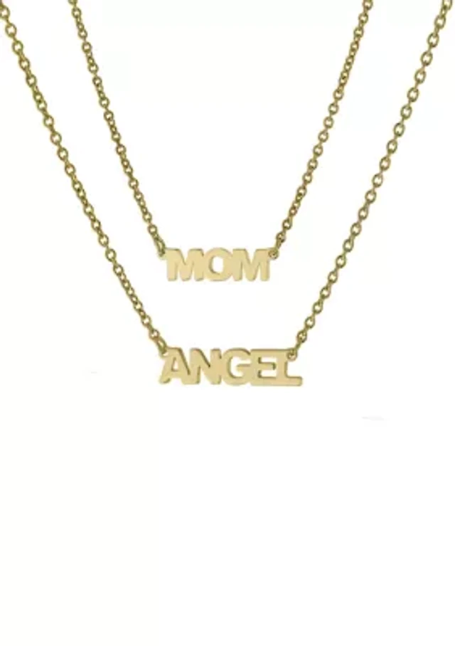 Boxed Gold Over Fine Silver Plated 16 in + 2 in Mom and 14 in + 2 in Angel Mom and Me Necklace Set