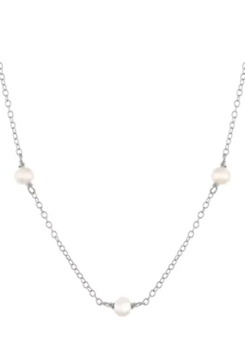 Freshwater Pearls accent this station necklace from Athra NJ, crafted out of polished sterling silver for durability and shine. 11 Freshwater Pearls Slip-on Polished finish Imported Product Specifications 16 in Length + 3 in extender Material & Care Sterling silver Clean with a soft cloth