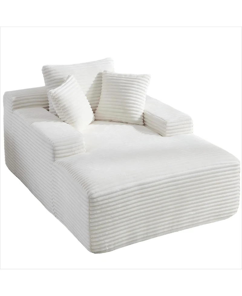 Boyel Living 67 Inch White Velvet Chaise Lounge Chair with 9.9 Wide Armrests and Deep Seat for Room