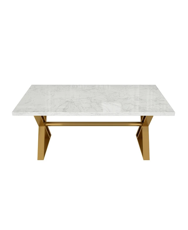Streamdale Furniture Streamdale Marble Dining Table for 6, 70" Rectangle Faux Marble w/ Mirrored Stainless Steel Base (Gold, Gray