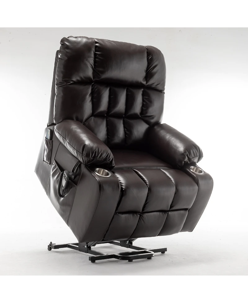 Boyel Living Leather Lift Recliner with Heat and Massage Lift Sofa Chair with 2 Pockets, 2 Cup Holder, 2 Remote