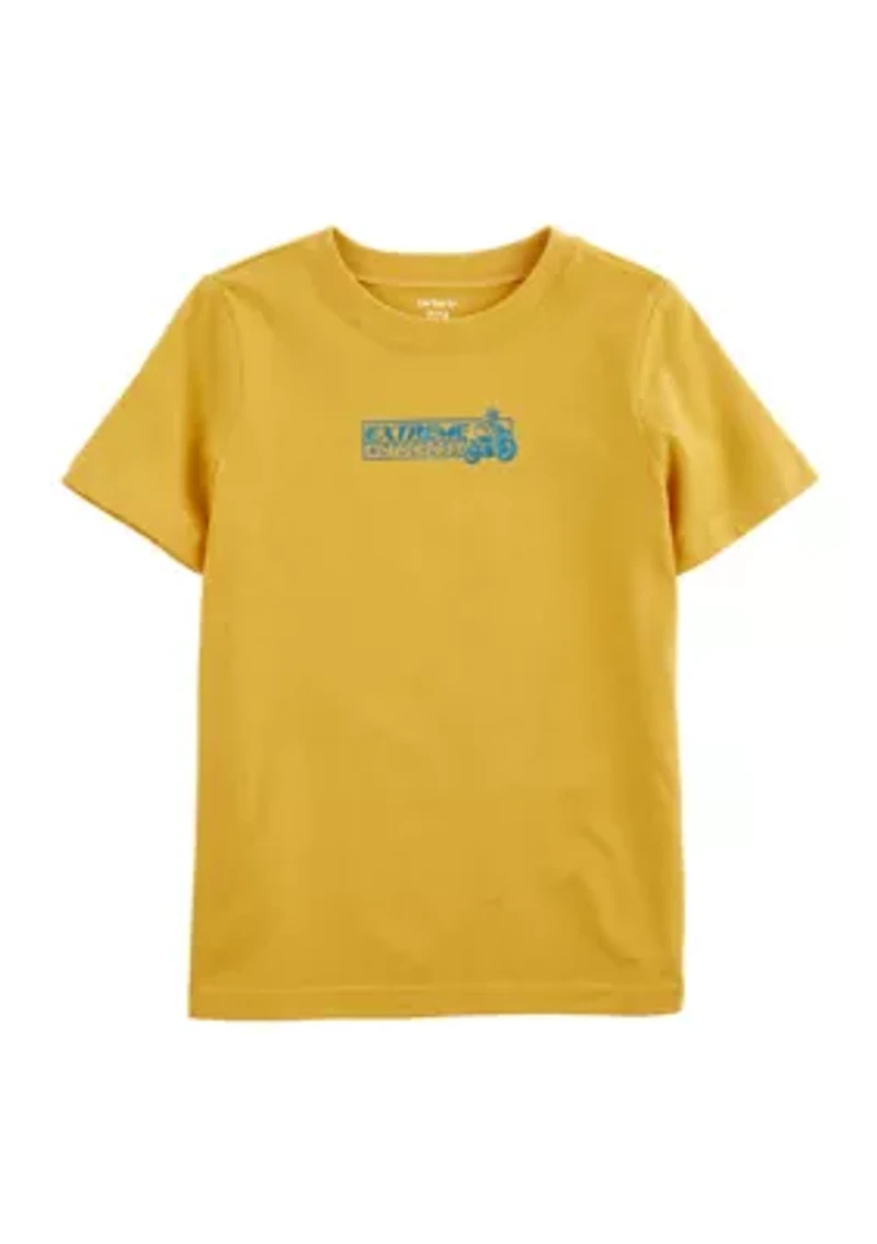 Crafted in soft cotton with a cool graphic, this short-sleeve t-shirt from Carter's® is perfect for his next adventure. Pullover Crew neck Short sleeves Imported Material & Care Cotton, polyester Machine washable