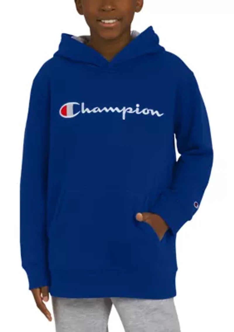 Featuring an embroidered version of the iconic Champion® logo, this stylish and comfortable hoodie will be one he'll reach for on the regular. Pullover Crew neck Long sleeve Kangaroo pocket Imported Material & Care cotton/polyester Machine washable, gentle cycle