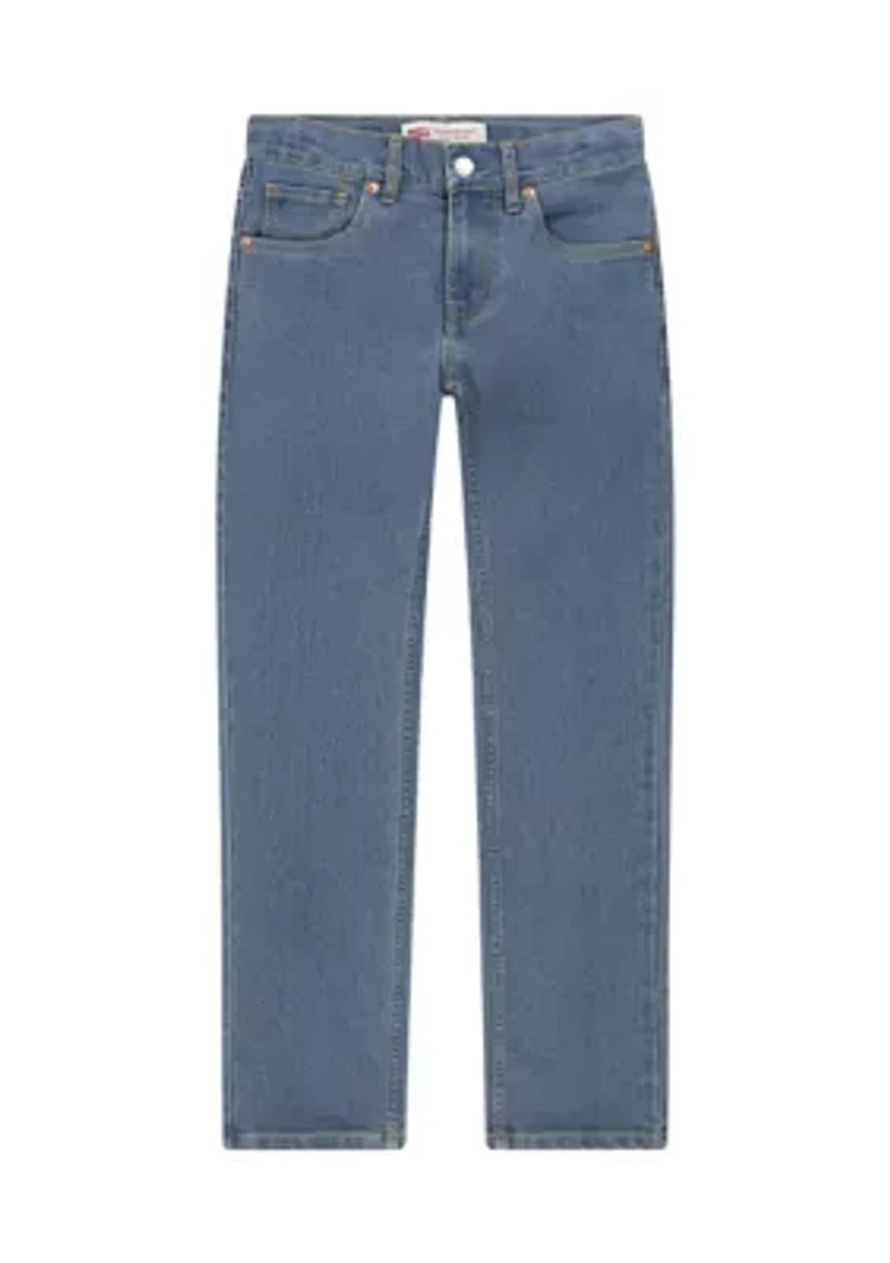 Classic and cool, these denim jeans from Levi's® are a great pick for everyday occasions. Style them with his favorite t-shirts to complete the look. Button closure, zip closure Belt loops Classic 5-pocket styling Slim fit Tapered leg Imported Material & Care Cotton, polyester, spandex Machine washable
